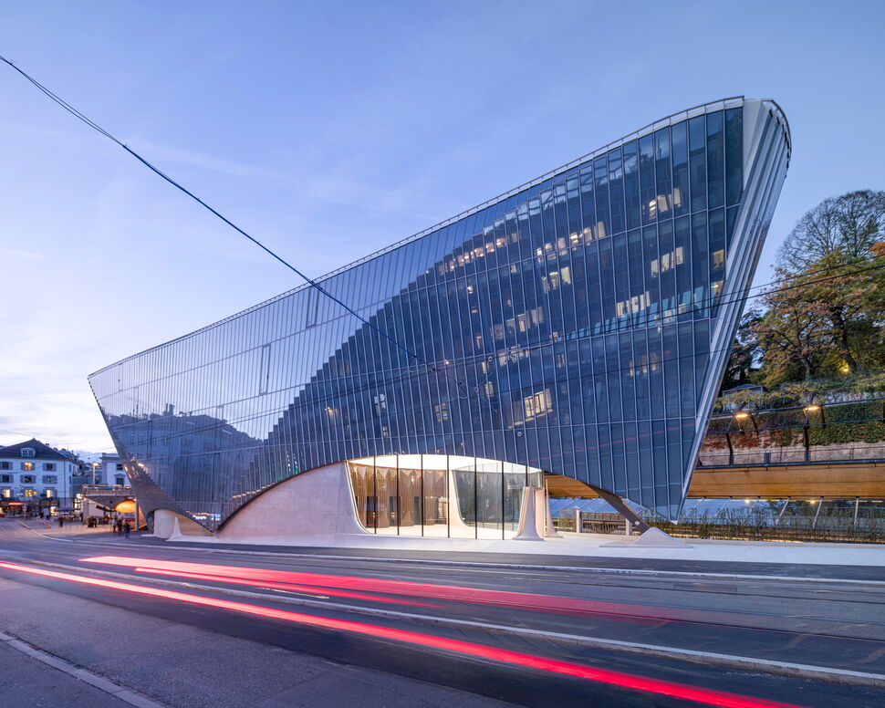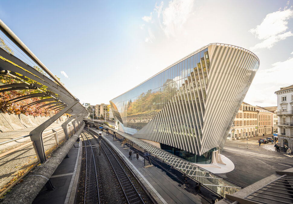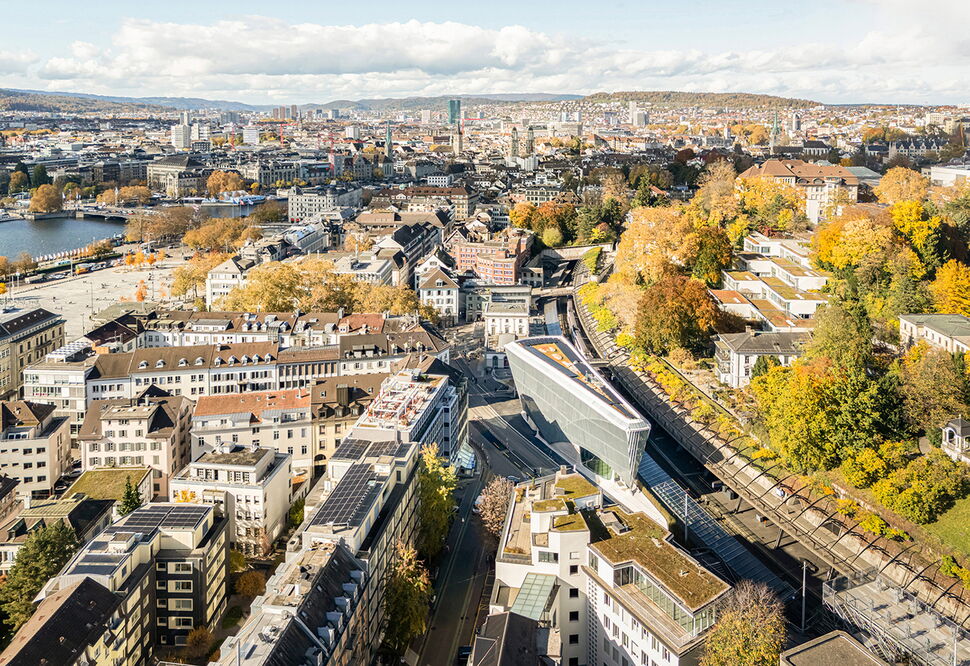 This mixed-use building that breathes new life into the Stadelhofen Station area. Images by Ingo Rasp