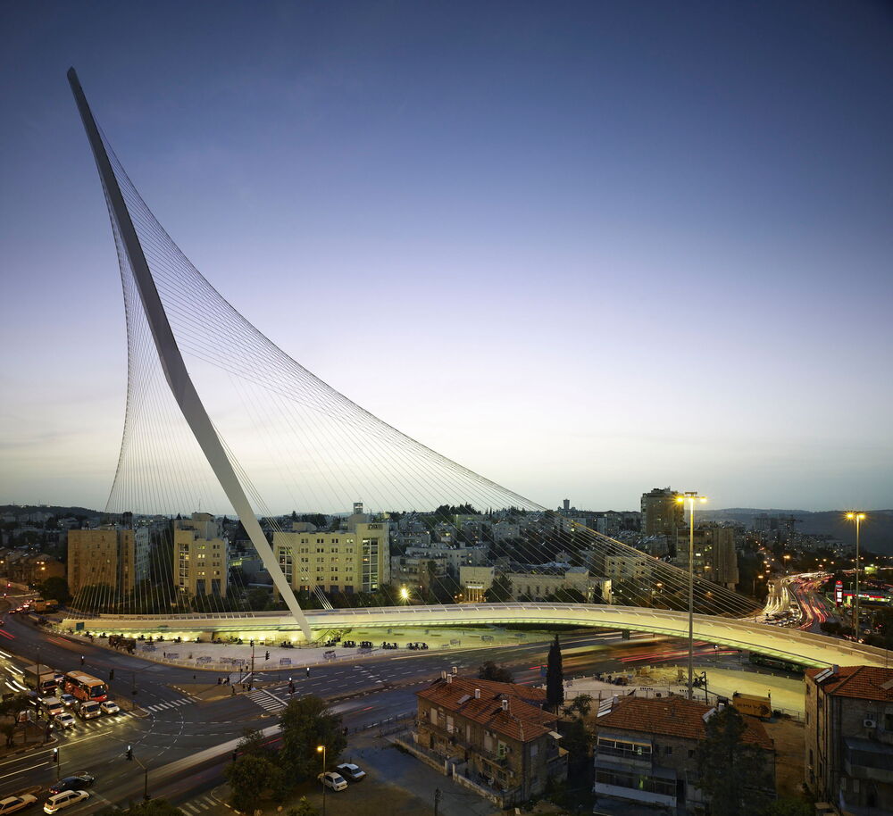 Calatrava’s ability to turn transport infrastructure into a city-defining icon is perhaps his greatest strength. The soaring mast of the cable-stayed Chords Bridge or “Bridge of Strings” in Jerusalem, Israel, is one of the architect’s most striking examples — providing the Israeli city with a contemporary emblem as well as facilitating a light rail system to solve some of its traffic problems.