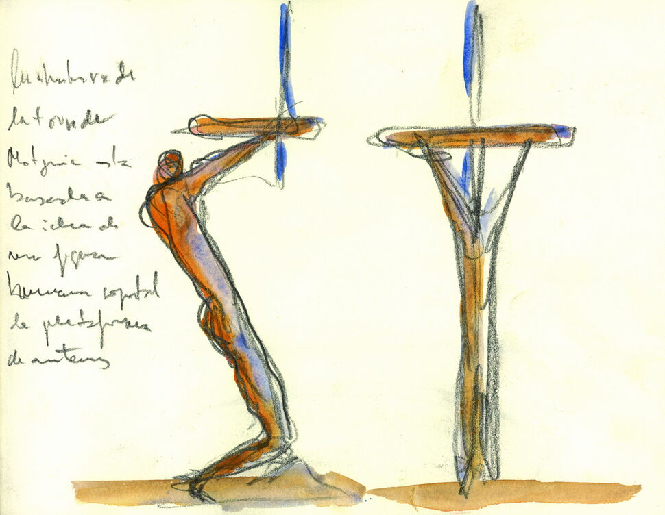 Montjuïc is a sacred mountain in Barcelona. It occupies a special location surrounded by the city and at the same time faces the sea. When I was commissioned to design this Olympic tower, I envisioned a figure with extended arms holding a ring symbolizing communication and openness to the world. In addition, as a part of the Olympic Park, this anthropomorphic form depicts the figures of the athletes who were competing directly underneath it.